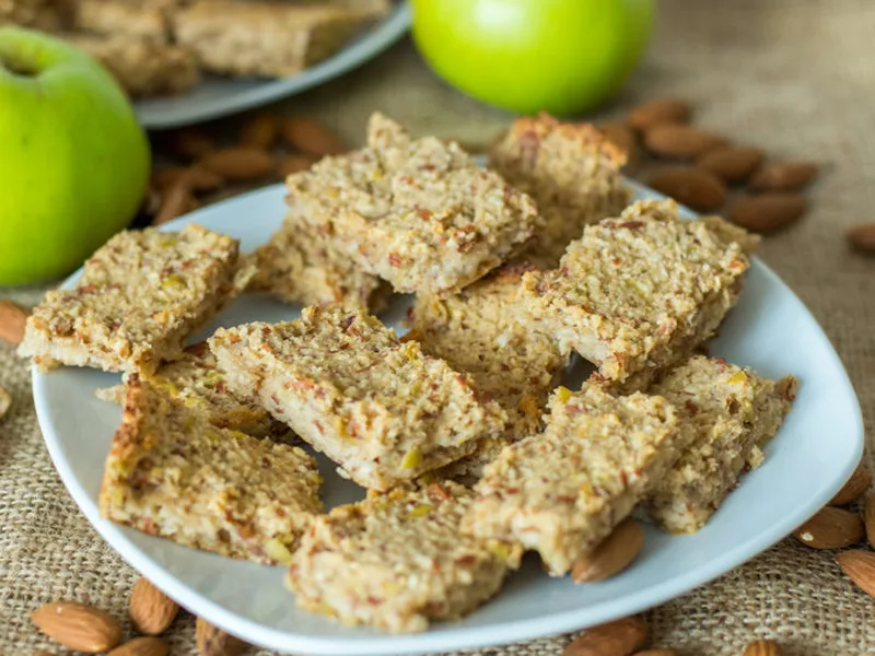No-flour breakfast bars made by blending soaked almonds, rolled oats, and fresh apples, then baked until golden. Simple, naturally sweetened, and ready in under an hour with overnight soaking. Store in the fridge for up to five days.