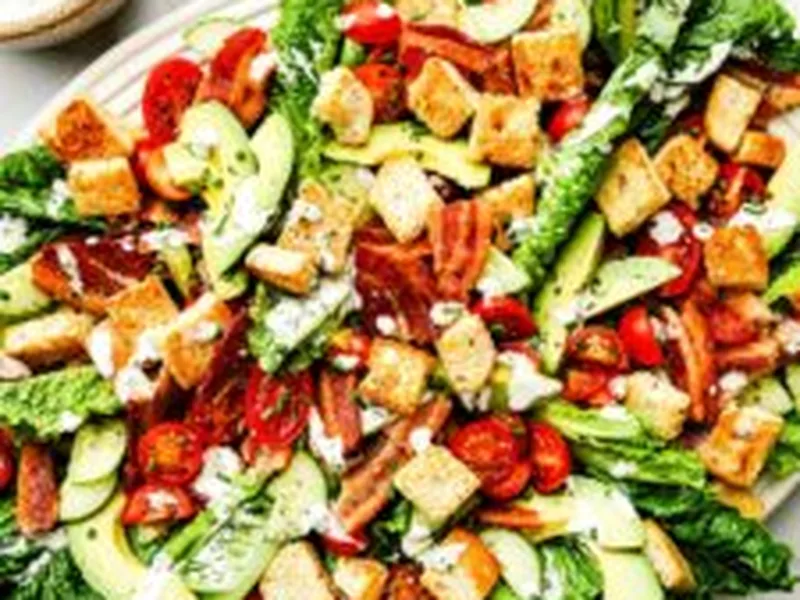 A deconstructed BLT that captures all the classic sandwich flavors in vibrant salad form, ready in half an hour. Thick-cut bacon crisps alongside golden sourdough croutons while romaine, tomatoes, cucumber, and avocado build layers of fresh crunch. The creamy buttermilk dressing binds everything together with tangy richness and bright chive notes. Perfect for lunch, light dinner, or meal prep, this salad works for anyone craving comfort without the bread. Serve it immediately after assembly to keep croutons crisp and avocado fresh. This version streamlines timing by baking bacon and croutons simultaneously, skipping the stovetop entirely while delivering restaurant-quality results at home.