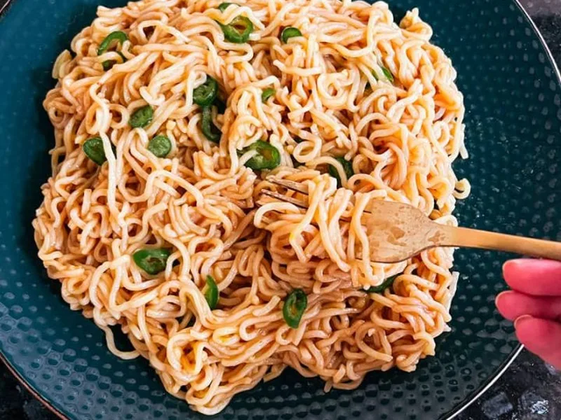 Quick Asian-inspired instant ramen tossed in a umami-rich miso butter sauce with garlic, soy, and honey. Finished with fresh spring onions and chili oil for heat and brightness. Ready in minutes for a satisfying weeknight meal.