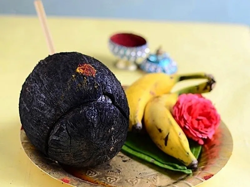 South Indian ceremonial dish where a whole coconut is hollowed, filled with a coarse mixture of roasted lentils, sesame seeds, poha, and jaggery, then roasted over an open flame until the shell cracks. The heat softens the coconut flesh while infusing it with the sweet, nutty stuffing. Traditionally offered as a temple offering before consuming.