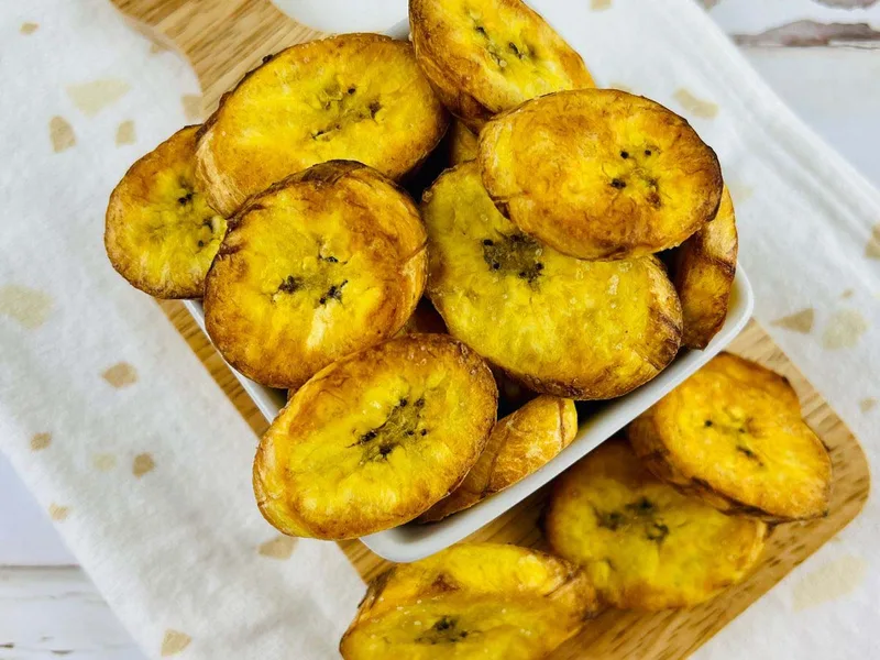 Refrigerate cooked plantains in an airtight container for up to 3 days. Reheat briefly in air fryer to restore crispness.