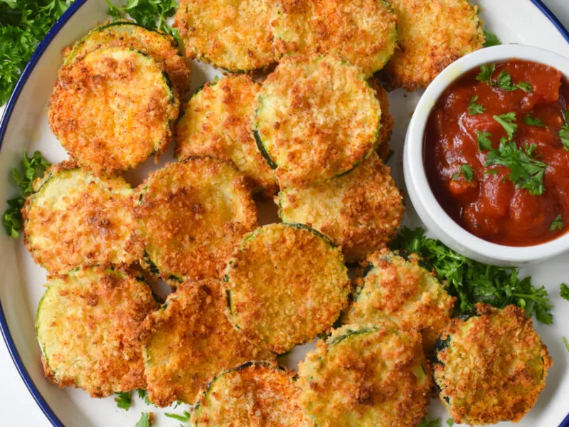Crispy air-fried zucchini coins deliver restaurant-quality results in minutes without deep frying. This recipe transforms soft summer squash into crunchy appetizers through a triple-dredge breading technique: flour, beaten egg, and panko-Parmesan coating. The keys to success are thorough moisture removal—patting dry or resting the sliced zucchini for 30 minutes—and the high-heat air fryer environment, which crisps the exterior while keeping the interior tender. Fresh garlic powder, Italian seasoning, and optional paprika build savory depth. Make these for game day snacking, vegetarian entertaining, or side-dish variety. They're lighter than traditional fried versions, ready in under 20 minutes, and pair perfectly with warm marinara for dunking. The panko stays golden and satisfying where regular breadcrumbs might soften; the optional Parmesan adds umami punch without overpowering the delicate vegetable.