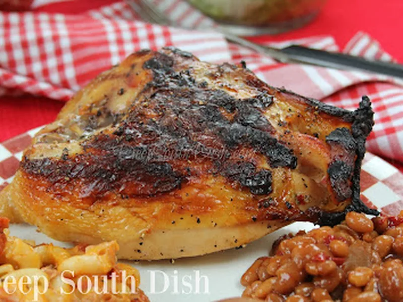 Use a charcoal grill and push coals to one side, or tent chicken loosely with foil on a single-heat gas grill and reduce temperature to 350°F, cooking 45-50 minutes.