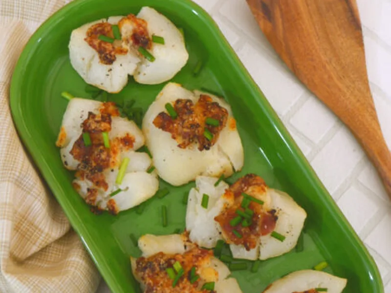 Creamy boiled turnips transformed into patties, topped with a savory crust of crispy bacon, Parmesan, and garlic, then roasted until golden. The combination delivers nutty sweetness from the turnips with salty, umami depth from the bacon and cheese. Serve as a sophisticated vegetable side for weeknight dinners or holiday meals. This version skips the traditional butter finish in favor of olive oil and bacon fat, creating a lighter but deeply flavored crust that crisps beautifully in the oven.