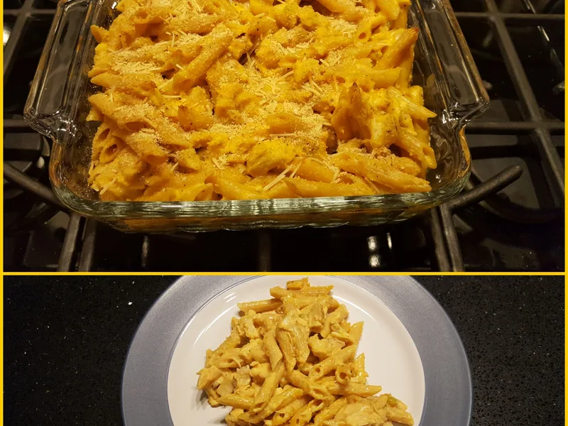 Baked Buffalo Chicken Pasta with Cheese Sauce