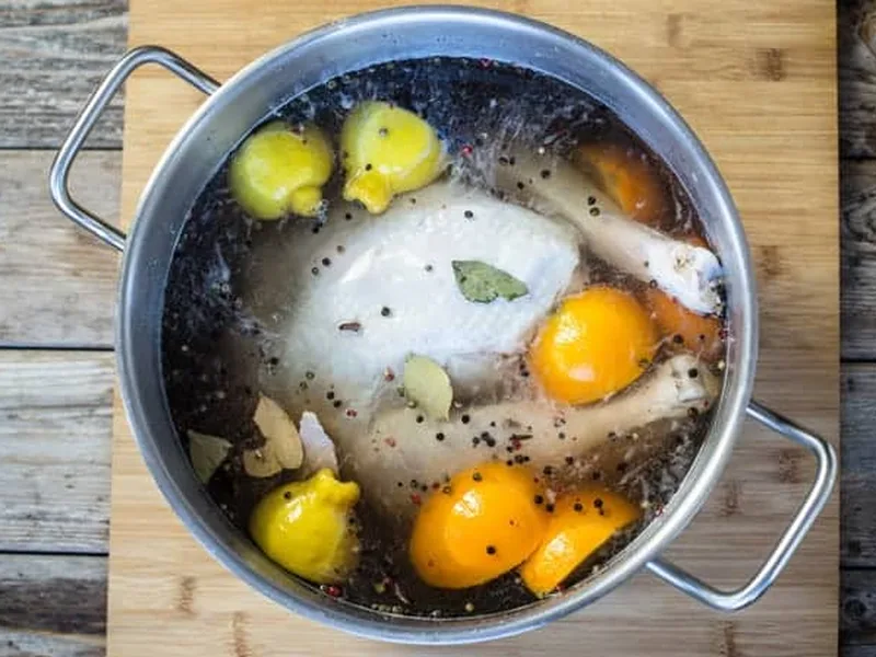 A savory-sweet brine combining kosher salt, brown sugar, citrus, and warm spices to deeply flavor turkey. Optional bourbon adds complexity. Designed for 12-16 pound birds brined 24-30 hours for maximum tenderness and seasoning penetration.