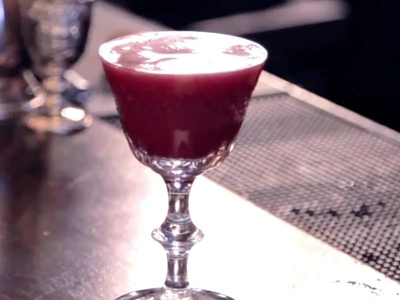 A vibrant morning drink combining bourbon and amaro montenegro with fresh lemon juice and blueberry preserves, shaken with ice and strained into a chilled glass. The preserve adds body and subtle fruit flavor while aromatic bitters round out the blend. Designed as a sophisticated companion to blueberry pancakes.