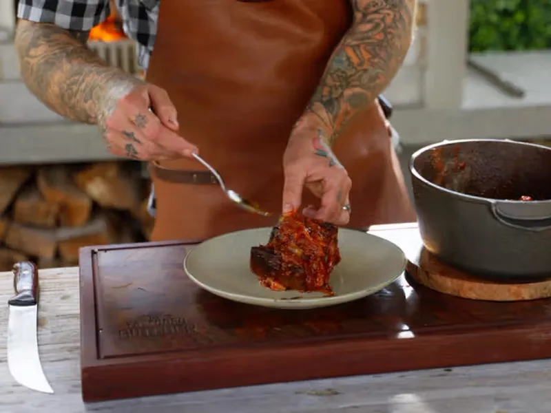 Cover with lid and braise on low indirect heat for 4 hours, or in oven at 275°F for 4 hours