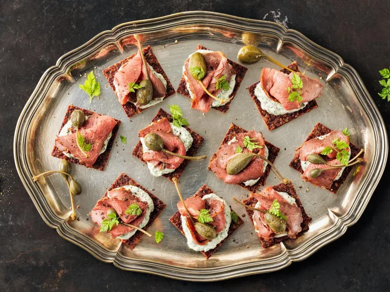 Beetroot Roast Beef Bites with Caper Berry Topping
