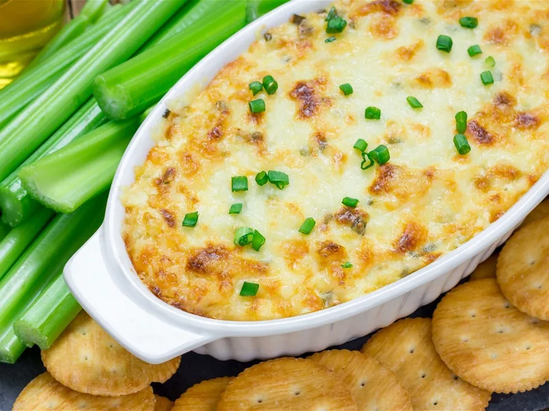 Rich and bubbly crab dip combining softened cream cheese, Duke's mayonnaise, and lump crab meat with sharp cheddar and green onions. Baked until golden and served warm with crackers, crostini, or fresh vegetables. An elegant appetizer for entertaining.