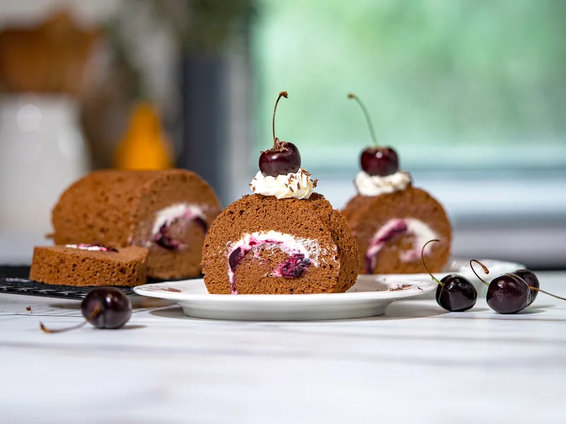 Black Forest Swiss Roll with Cherry Jam