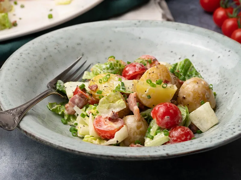 Toss components separately before final assembly if prepping ahead. This prevents lettuce from wilting and potatoes from absorbing too much dressing hours before serving.
