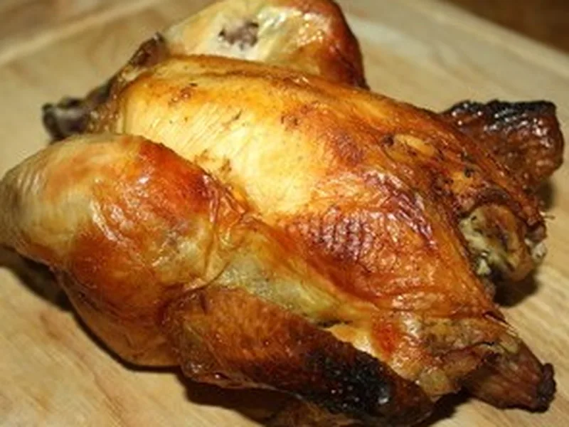 A succulent whole roasted chicken through brining and rotisserie-style technique. Salt and sugar brine penetrates the meat for 1-24 hours, ensuring deep seasoning and moisture retention. Butter tunneled under the breast skin keeps white meat tender while the bird rotates through three positions—first wing-side up, then opposite wing, finally breast up—for even browning and crispy skin. McCormick Rotisserie Chicken seasoning adds savory complexity. The result is meat so juicy it falls from the bone, with crackling, golden skin and bright citrus notes from cavity-roasted lemon. Perfect for weeknight dinners or Sunday gatherings. This method transforms ordinary roasted chicken into restaurant-quality poultry without special equipment, yielding impressive results through technique rather than complexity.