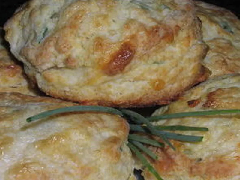 Flaky, tender biscuits loaded with sharp cheddar and fresh chives. The lamination technique—folding the dough in thirds—creates distinct, crispy layers that shatter when bitten. Serve warm with butter and jam, or alongside soups and stews. This version prioritizes texture over density, producing biscuits that are light and airy rather than dense or cake-like.