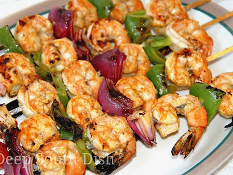 Jumbo shrimp threaded onto skewers with bell pepper, red onion, and cherry tomatoes, coated in a bold Cajun marinade of olive oil, lemon juice, honey, and a blend of paprika, Cajun seasoning, and Old Bay. The shrimp grill quickly over high heat, turning once until just cooked through, then finished with melted butter and optional hot sauce. What makes this version stand out is the honey-sweetened marinade that balances the spice and char, plus the strategic addition of tomatoes near the end of cooking to prevent them from drying out. The result is tender, smoky shrimp with caramelized vegetables and bright citrus notes. Perfect for summer entertaining, weeknight dinners, or meal prep. Serve hot with lemon wedges and your favorite hot pepper sauce for heat lovers.