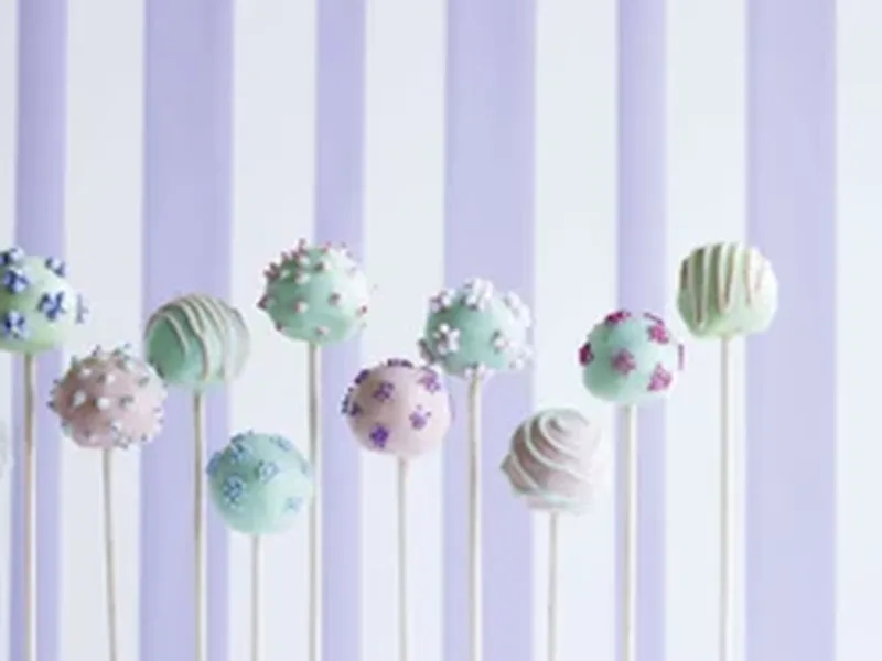 Crumbly lemon cake mixed with mascarpone and lemon zest, formed into balls, chilled, then dipped in white chocolate colored with food coloring and finished with sugar pearls and flowers. A delicate petit four for tea or celebrations.
