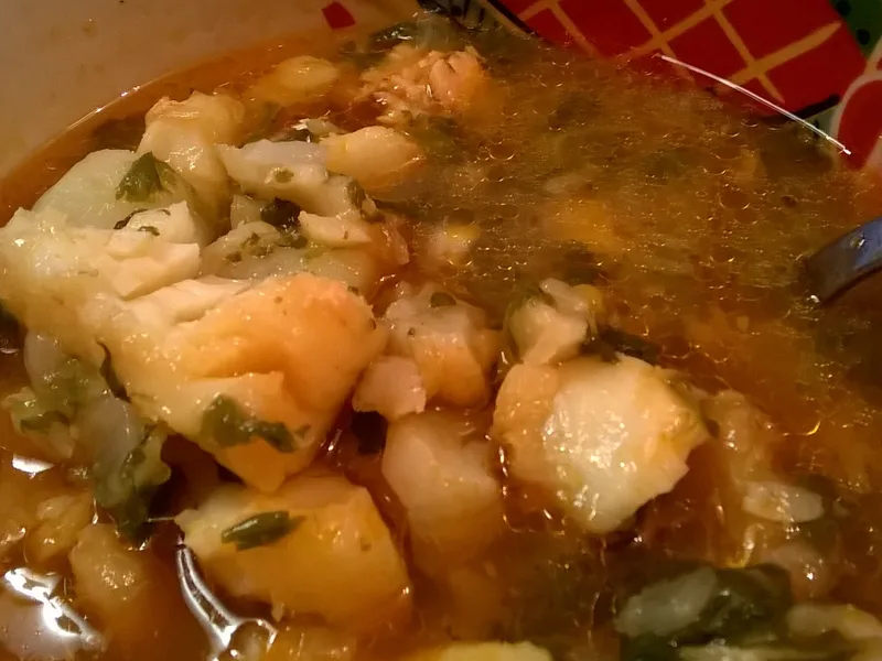 Caldo de peixe is a hearty, rustic fish soup from the Cape Verde Islands that showcases humble ingredients transformed through slow simmering. White and sweet potatoes create a naturally creamy base, while fresh fish, aromatic peppers, onions, and tomatoes build deep savory flavor. Herbaceous notes from parsley and scallions brighten the broth. Serve this warming, comforting soup as a main course for family dinners or special occasions, particularly during cooler months. This version honors traditional Cape Verdean preparation, letting quality fish and vegetables shine without heavy cream or complicated techniques.