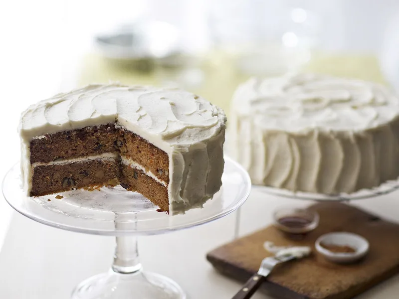 A moist, spiced carrot cake layered with luxurious mascarpone-cream cheese frosting. Warm cinnamon and allspice notes complement grated carrots and toasted walnuts, while applesauce keeps the crumb tender. The frosting combines three dairy elements for a rich, tangy finish. Serve at celebrations, potlucks, or as an elegant dessert for gatherings. This version balances classic flavors with premium spices and mascarpone for depth.