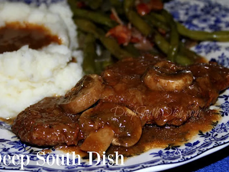 Tender cube steaks browned in cast iron and simmered in savory onion gravy with optional mushrooms. This Southern comfort classic features steaks seasoned with Worcestershire and Cajun spices, dredged and pan-fried until golden, then braised low and slow in a from-scratch gravy built on caramelized onions and onion soup mix. Serve over mashed potatoes or rice for a weeknight dinner that tastes like home cooking. What sets this apart is the dual-seasoning approach (wet and dry) and the technique of reserving seasoned flour to thicken the gravy, ensuring rich flavor and silky texture throughout.