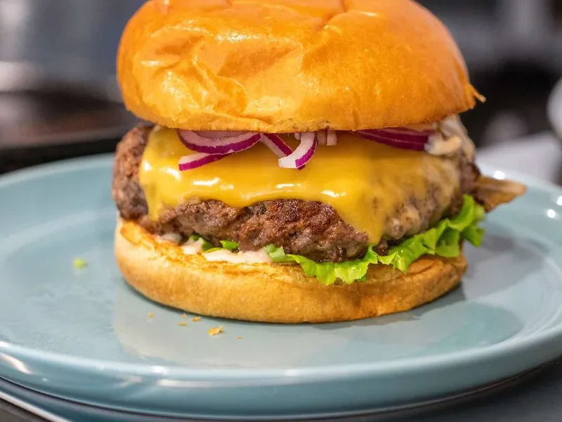 Learn to make restaurant-quality burgers entirely on the stovetop using cast iron and proper technique. This method produces a deeply browned, caramelized crust while keeping the interior juicy, achieved through strategic pressing and uninterrupted cooking. The burger shines with optional seasoning (salt, pepper, garlic powder), topped with melted American cheese and a custom sauce blending mayo, Dijon mustard, and ketchup. Fresh lettuce, tomato, and red onion add crisp contrast. Perfect for weeknight dinners or casual entertaining, this approach eliminates grill dependency and works in any kitchen. The key innovation is the center divot, preventing puffing, combined with brief initial pressing for browning without constant flipping. Serve immediately on potato or brioche buns with a cold beverage.
