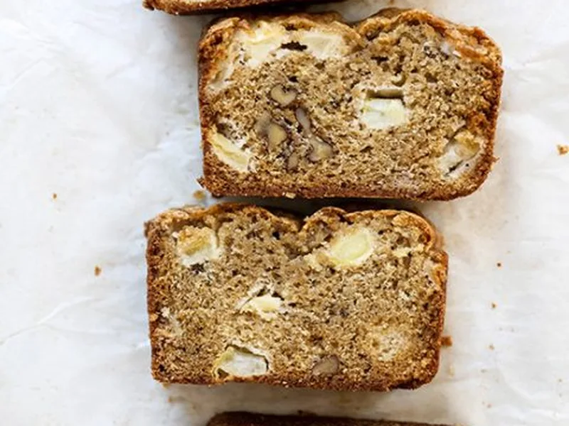 Two moist loaves of quick bread studded with fresh apples and walnuts, warming chai spices woven through the crumb. The blend of cinnamon, ginger, cloves, cardamom, nutmeg and black pepper builds depth without overpowering the apple. Oil keeps the texture tender; use three teaspoons of spice mix for subtle warmth or four for bolder flavor.