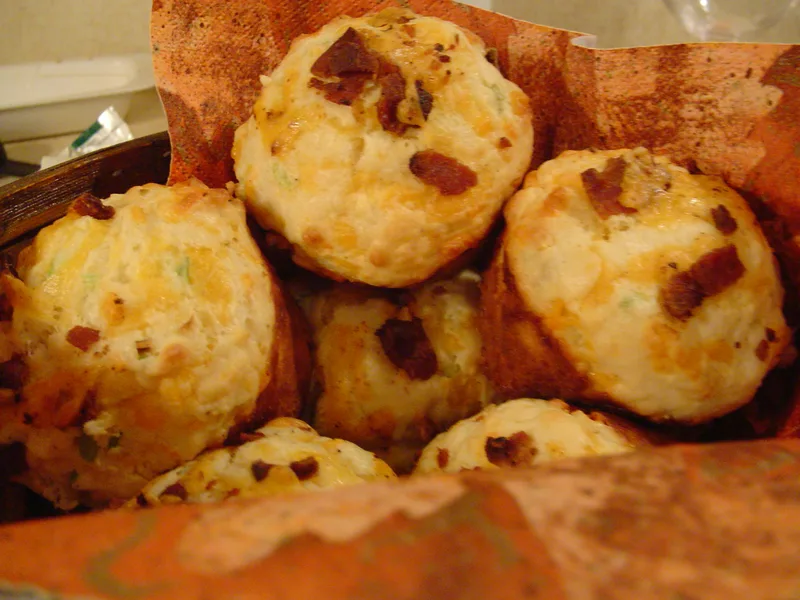 Prepare and crumble bacon up to 1 day ahead. Mix dry ingredients the morning of baking. Do not prepare full batter in advance; mix wet and dry ingredients just before baking.