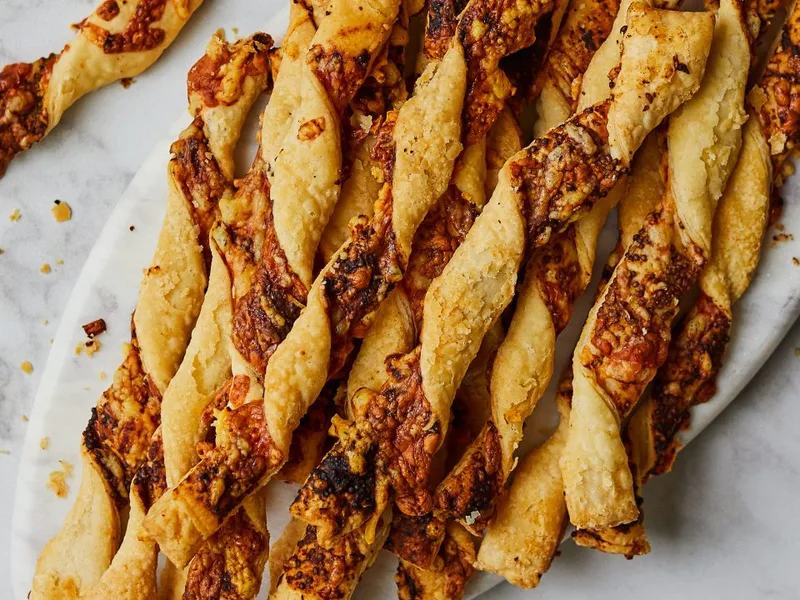 Cheesy Mustard Twists: Crispy Flaky Pastry Straws