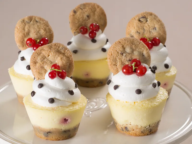 Cheese Cupcakes with Shortbread Cookies and Red Currants