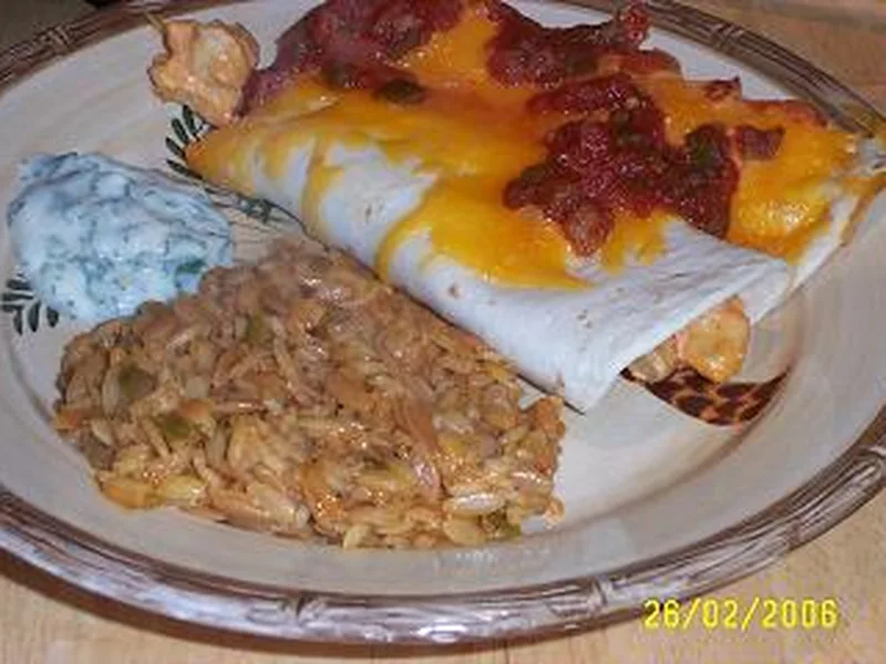 Distribute filling evenly among tortillas, roll tightly, and arrange seam-side down in a 12x8 inch baking dish.