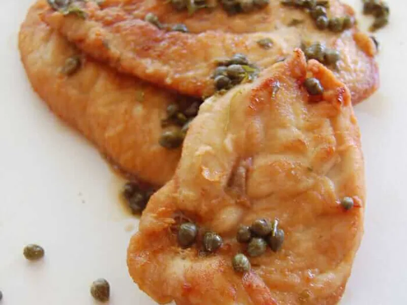 Thin-pounded chicken breasts fried until golden, then finished in a bright lemon and caper sauce with white wine reduction. Quick pan sauce comes together after the chicken is cooked, creating a tangy, briny dish that's restaurant-quality but weeknight-simple.