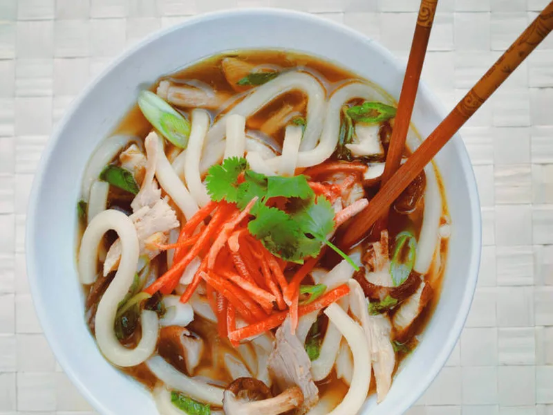 Fragrant Southeast Asian-inspired broth infused with lemongrass, ginger, and serrano heat, layered with tender chicken, chewy udon noodles, and fresh herb garnishes. The butterfly-cut chicken cooks quickly while aromatics build depth in the broth. Serve hot in deep bowls for a complete meal that balances savory umami, bright citrus, and herbaceous freshness. This version prioritizes fresh aromatics and quick assembly for weeknight appeal.