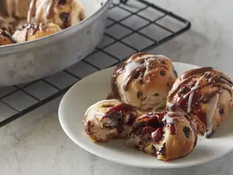 These indulgent biscuit bombs transform refrigerated chocolate chip biscuits into gooey, chocolate-stuffed treats. Each biscuit is split, filled with extra chocolate chips, then wrapped and baked until golden. The result is a warm, pull-apart dessert with melted chocolate centers and a sweet drizzle on top. Perfect for weekend breakfasts, after-school snacks, or casual desserts when you want something special without the fuss. The contrast between the tender biscuit exterior and the molten chocolate surprise inside makes these irresistible.