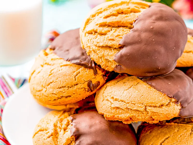 Dough can be portioned and frozen for up to 3 months; bake directly from frozen, adding 2 to 3 minutes to baking time. Baked cookies can be frozen before dipping for up to 2 months.