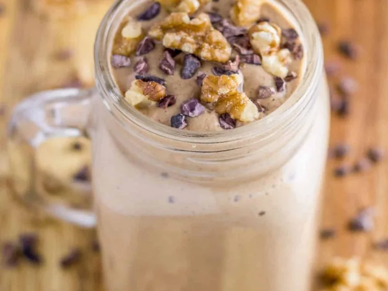 Creamy, nutrient-dense breakfast mousse blending almond milk, avocado, and walnuts with cacao powder and maca for an energizing start. Finished with walnut and cacao nib garnish for texture and antioxidants.