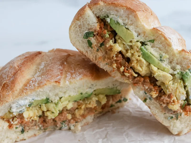 Chorizo and Egg Breakfast Torta with Avocado