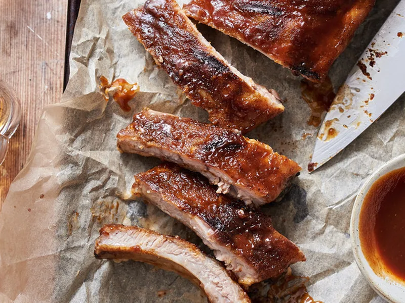 Season ribs and make sauce up to 1 day ahead, refrigerate separately