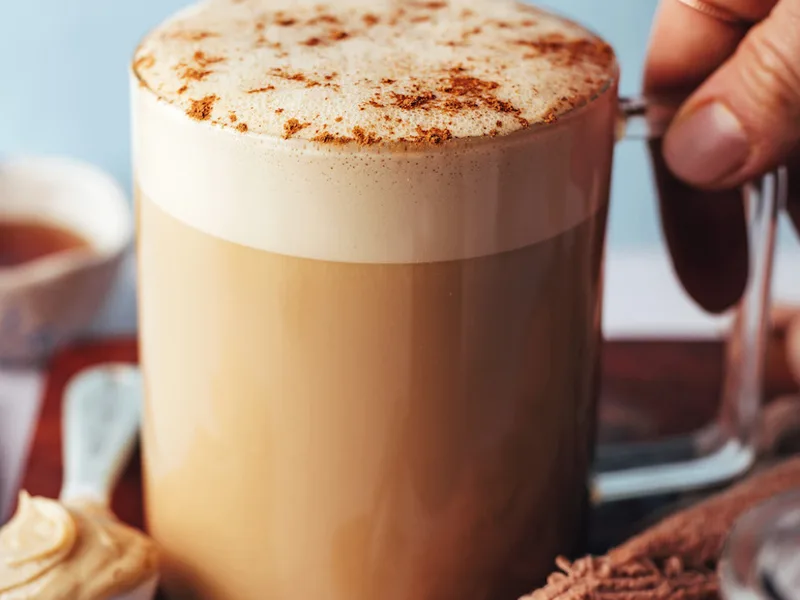 Creamy, caffeine-free latte made with roasted dandelion root tea blended with cashew butter, vanilla, cinnamon, and maple syrup. The result is a naturally sweet, warming beverage with earthy undertones and a silky froth. Ideal for morning or afternoon sipping when seeking comfort without caffeine. This version prioritizes whole-food creaminess through nut butter rather than dairy, making it plant-based and customizable for dietary preferences.