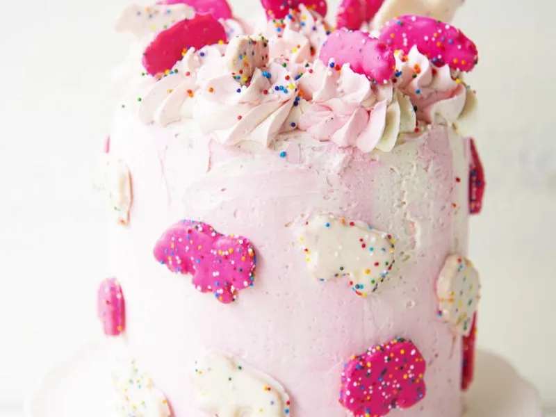 Circus Animal Cookie Layer Cake with Malted Buttercream