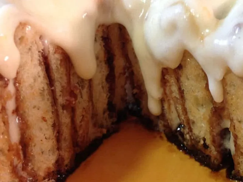 Frosting application immediately after baking allows it to melt and seep between rolls for signature texture.