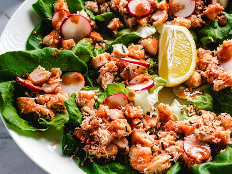Chilled seafood appetizer combining sweet lump crab and tender shrimp with zesty lemon, fresh chives, and crisp radishes tucked into buttery Boston lettuce leaves. A classic cocktail sauce spiked with horseradish and hot sauce adds tangy heat. Light, elegant, and no-cook, this works perfectly for spring entertaining, lunch platters, or as a first course. The version shines by using whole seafood pieces and raw radish crunch against the smooth, creamy cocktail sauce--more textural than typical versions.
