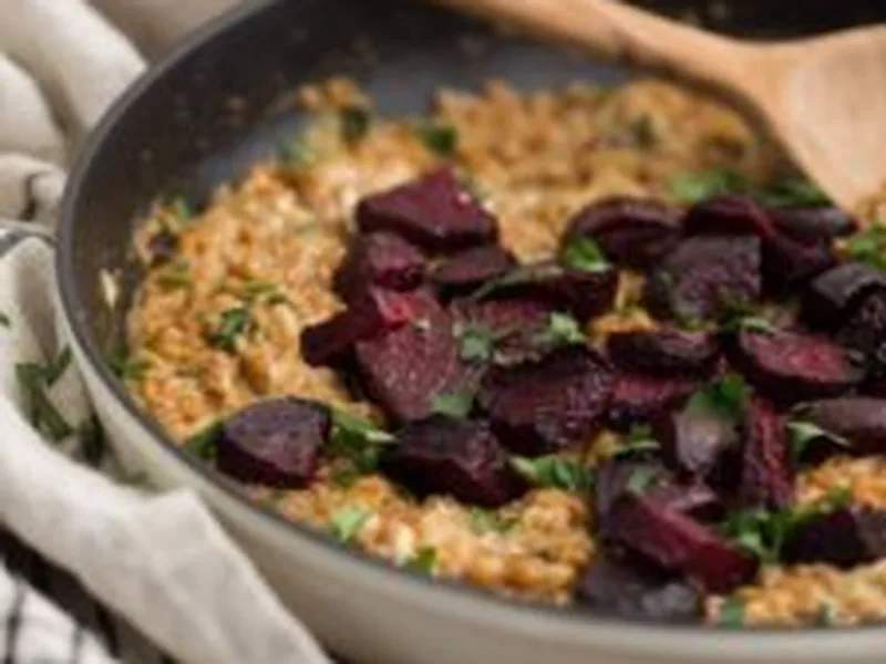 Cracked Spelt Risotto with Roasted Beets and Goat Cheese