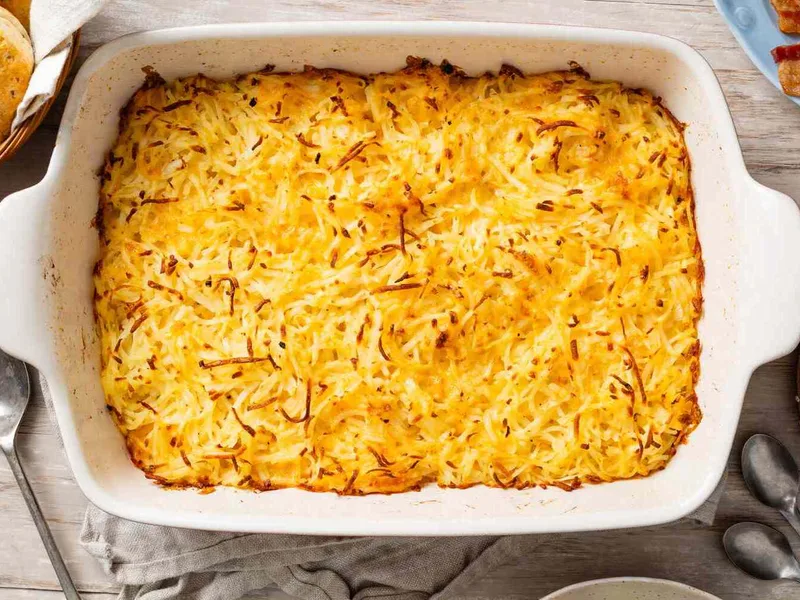 Thaw frozen hash browns completely and drain excess moisture for best texture and to prevent watery casserole.
