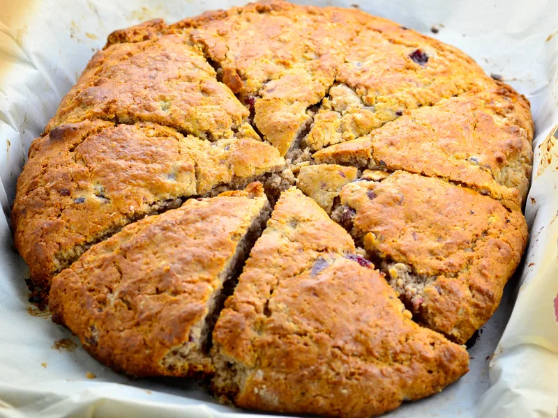Tender, buttery scones studded with tart cranberry sauce and brightened by orange zest and warm cinnamon. Perfect for using up leftover cranberry sauce from Thanksgiving or Christmas dinner. This version is stickier than traditional scones due to the fruit component, which requires careful handling but rewards you with incredibly moist, flavorful results. Serve warm with butter for an elegant brunch or afternoon tea treat that humble leftovers into something special.