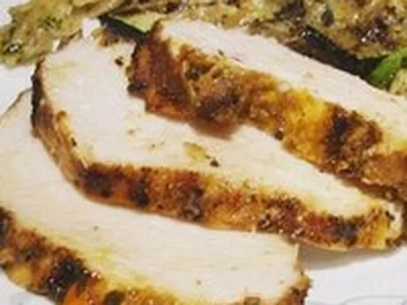 Boneless chicken breasts marinated in a bold blend of lemon juice, olive oil, chili powder, sage, oregano, and cumin, then grilled to juicy perfection. The marinade is simmered and used as a basting sauce throughout cooking for enhanced flavor and moisture.