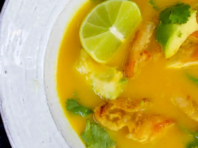 Ladle hot broth into bowls, top with crispy chicken, fresh cilantro, avocado slices, and lime juice. Serve with crusty bread or over rice for heartier portions.