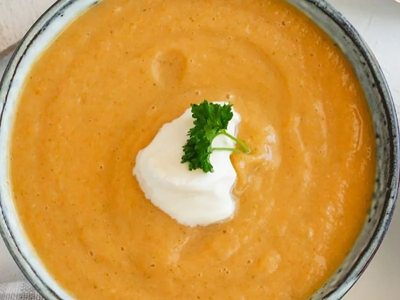 A velvety vegetable soup built on a foundation of sautéed carrots, broccoli, and cauliflower, enriched with butter and thickened with flour. This version delivers deep vegetable flavor without cream, relying instead on natural starches and a smooth blended texture for richness. Bright notes of red pepper flakes and dried basil add warmth and herbaceous complexity, while low-sodium chicken broth keeps the focus on the vegetables themselves. The soup suits weeknight dinners and meal prep equally well, coming together in under 30 minutes. Ideal for those seeking comfort food that's naturally lighter, this recipe proves that creamy texture doesn't require dairy—just proper technique and patient cooking. Serve as a satisfying lunch, dinner starter, or pair with crusty bread for a complete meal.