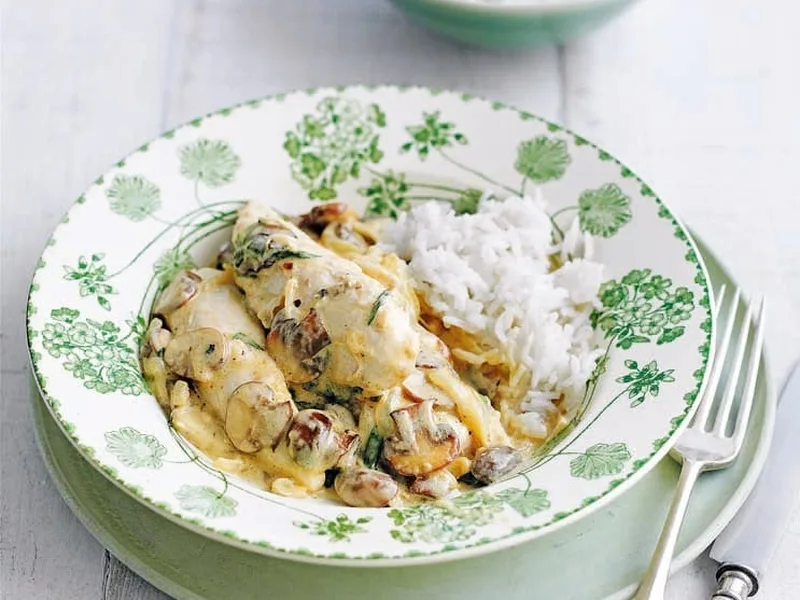 A classic French-inspired one-pan chicken fricassée combines tender chicken mini fillets with earthy chestnut mushrooms in a silky cream sauce infused with fresh tarragon and white wine. This elegant dish balances richness with bright herbaceous notes from tarragon and a squeeze of lemon, creating a sophisticated yet approachable weeknight dinner. The mushrooms are cooked separately until golden to develop deep flavor, then combined with soft onions and chicken in a velvety sauce thickened with just a touch of flour. Perfect for home cooks seeking restaurant-quality results without excessive complexity, this version prioritizes clean technique and quality ingredients—the free-range chicken and fresh herbs enhance it beyond basic comfort food. Serve over basmati rice to soak up the luxurious sauce. Ideal for entertaining or a special family meal, it comes together in under 45 minutes and impresses without demanding advanced skills.