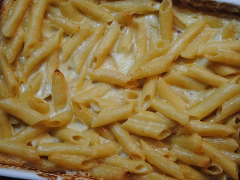 A no-fuss comfort food that combines cooked pasta with condensed cream of chicken soup, milk, and melted cheese into a golden, bubbling casserole. The appeal lies in its simplicity—minimal prep, minimal ingredients, maximum satisfaction. Creamy sauce coats tender pasta while the cheese top crisps under heat, creating textural contrast. The chicken flavor comes entirely from the soup base, making this ideal for weeknight dinners when time is short. Serve this to families seeking honest, unfussy food or anyone craving warm, cheesy pasta without culinary fuss. It works equally well as a casual weeknight supper or potluck contribution. This version strips back complexity to its essence: pantry staples transform into a complete baked pasta dish that tastes homemade despite requiring almost no technique.