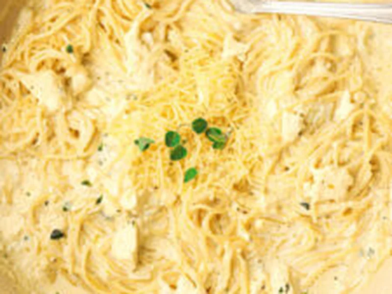- 8 ounces pasta (spaghetti, orzo, or fettuccini), uncookedorzo1:1starchFull guide →
