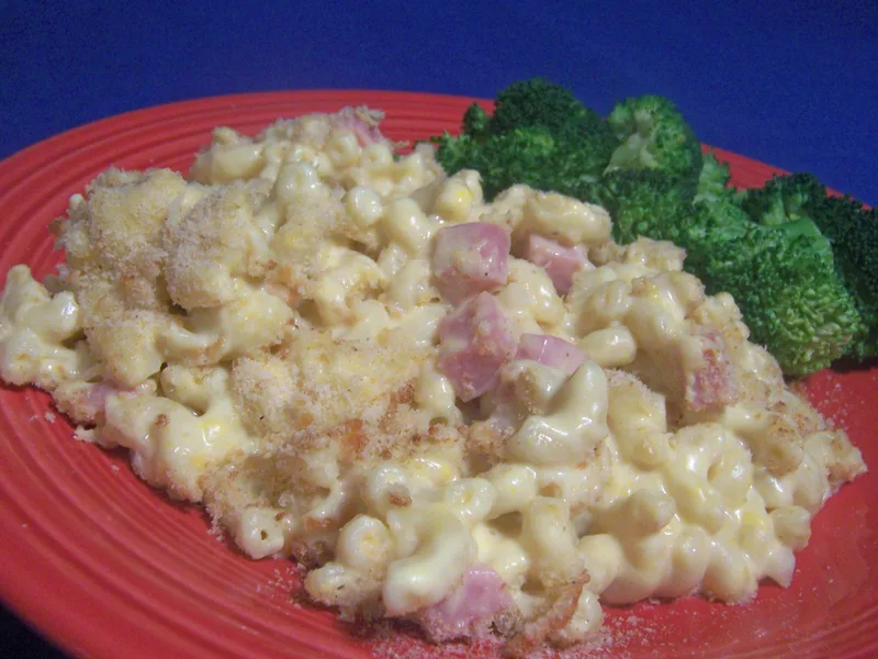 Creamy Ham and Cheddar Mac and Cheese Broil